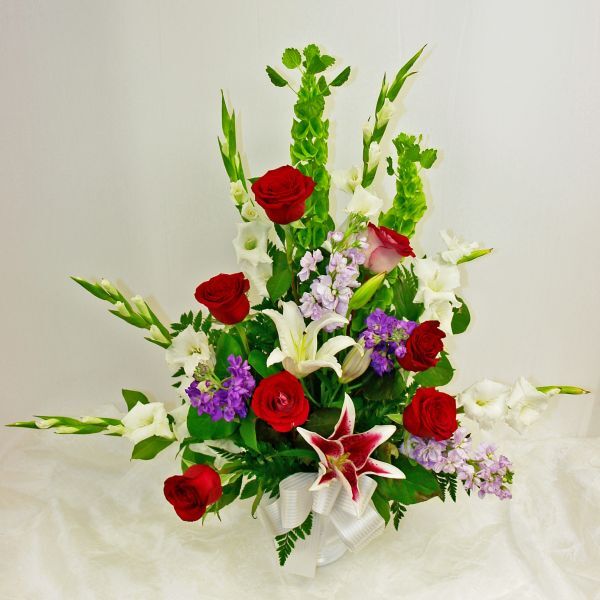 Red White And Purple Sympathy Arrangement Roberts Floral And Gifts